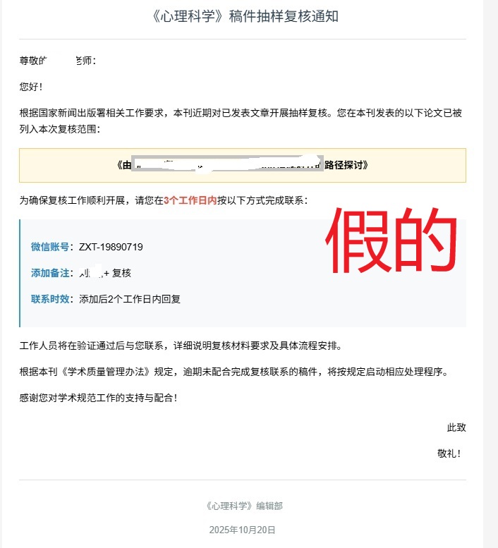 近期,有老师收到以下邮件(见下图),非本刊发送,为虚假信息,请老师们不要轻信。